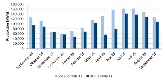 Die dargestellte Produktion entspricht der abgelesenen Produktion durch Voigt & Collegen und ist vorbehaltlich eventueller Korrekturen seitens des Netzbetreibers.