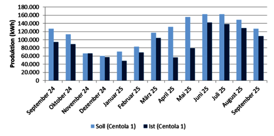 Die dargestellte Produktion entspricht der abgelesenen Produktion durch Voigt & Collegen und ist vorbehaltlich eventueller Korrekturen seitens des Netzbetreibers.