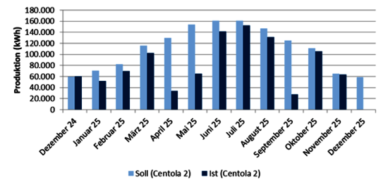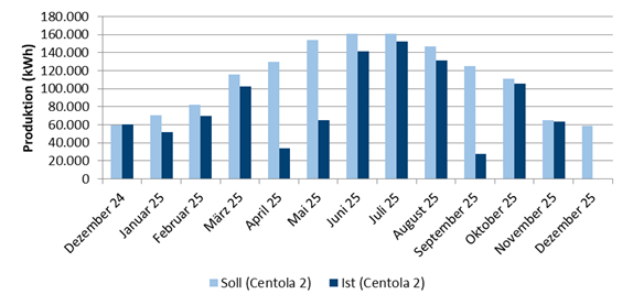 Die dargestellte Produktion entspricht der abgelesenen Produktion durch Voigt & Collegen und ist vorbehaltlich eventueller Korrekturen seitens des Netzbetreibers.